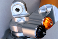 つまりメインピストンはオリフィスやシムを持たないソリッド形状で、真の意味でのピストンであり、オイルを押し出し、引き戻すためだけに存在します。ピストンロッド内部にもオイル通路やニードルを組込む必要がないので、小径/軽量に仕上がっています。シリンダ内のオイル通路には、ブリードバルブやベースバルブは一切設けておらず、非常にシンプルな構造です。